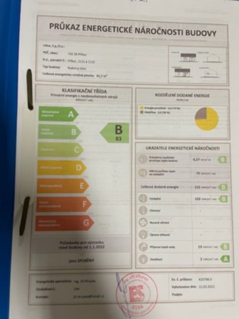 Dům spadá z hlediska energetické náročnosti pod energetickou třídu B.
